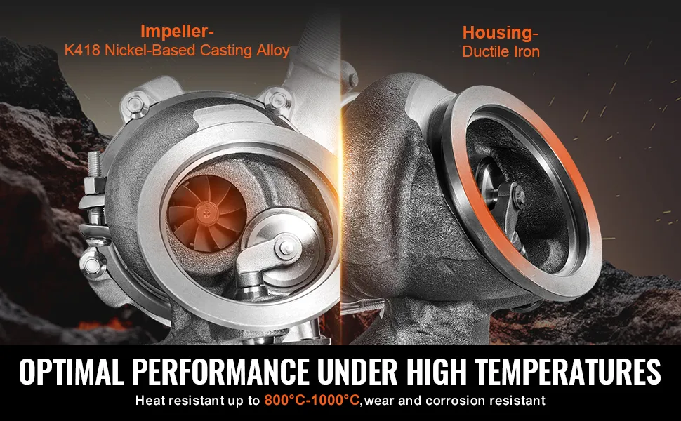 Materiali resistenti al calore: il turbocompressore ha un alloggiamento in ghisa sferoidale e una girante in lega fusa a base di nichel K418, che può resistere a temperature fino a 800-1000 °C. Ciò garantisce prestazioni affidabili e stabilità anche a temperature estreme.