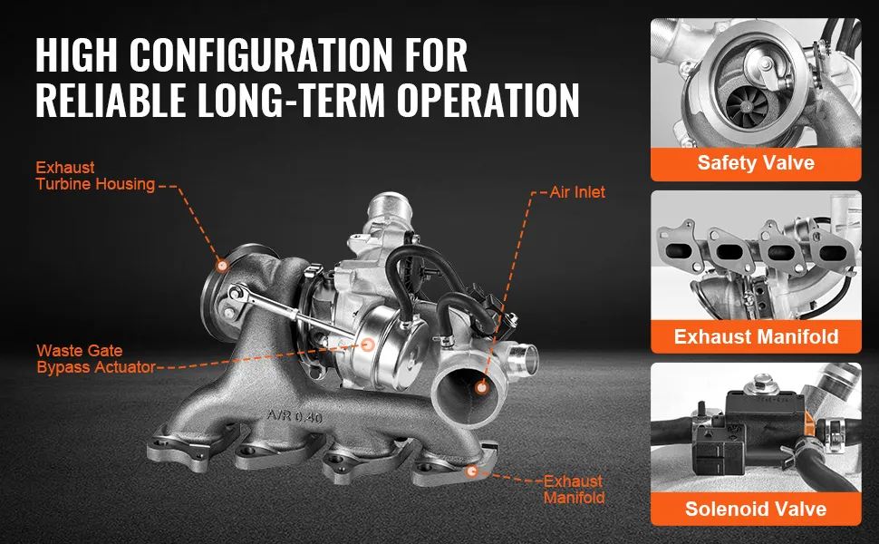 Configurazione avanzata: dotato di valvola di sicurezza, collettore di scarico ed elettrovalvola, questo kit turbocompressore fornisce un sistema di sovralimentazione efficiente, sicuro e reattivo con protezione di sicurezza completa e controllo preciso.