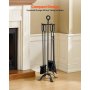 VEVOR Fireplace Tool Set, 5 PCS Fire Tool Set and Holder with Four-Prong Stand, Tongs, Ash Shovel, Brush, Fire Place Poker, Wrought Iron Fireplace Accessories for Campfire Indoor/Outdoor, Black