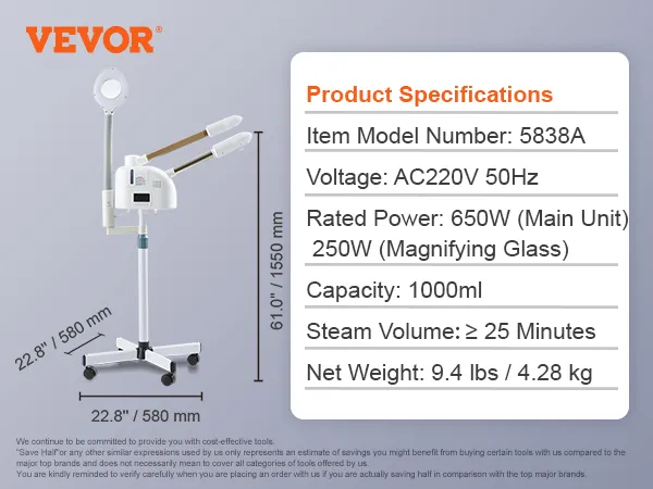 Il vaporizzatore per viso, facile da usare, è perfetto per i saloni di bellezza, i parrucchieri o per l'uso domestico. È uno strumento versatile che offre trattamenti di alta qualità senza bisogno di installazioni complicate.