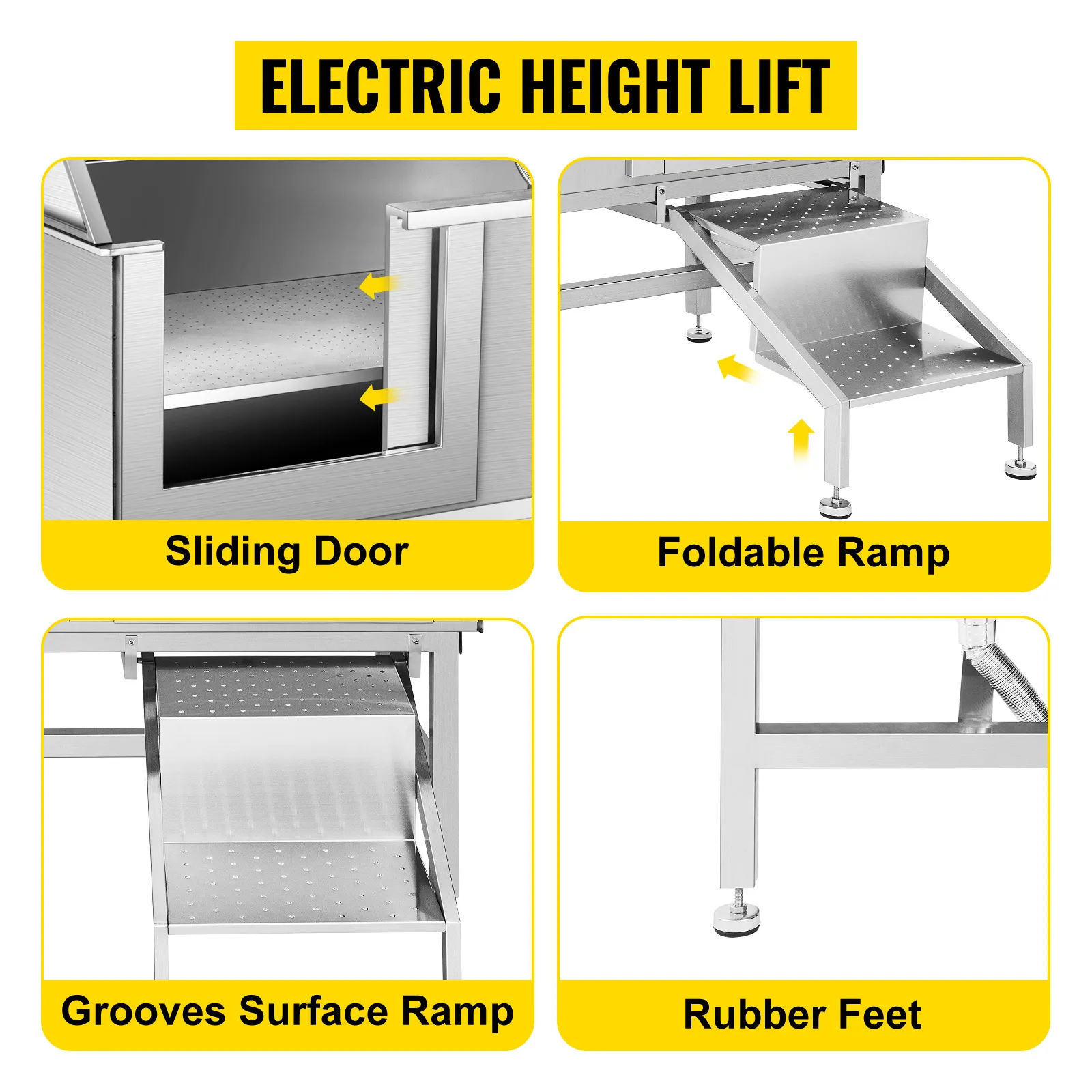 Indipendentemente dalla dimensione della vasca professionale per il lavaggio dei cani che stai cercando, VEVOR ha diverse dimensioni di vasche per la toelettatura dei cani: scegli quella che ritieni adatta. Disponiamo anche di vasche con varianti di apertura della porta, come apertura della porta destra o sinistra. Ciò significa che, sia che tu voglia la porta attrezzata sul lato destro o sul lato sinistro della vasca, potrai scegliere ciò che ritieni migliore per il tuo cucciolo.