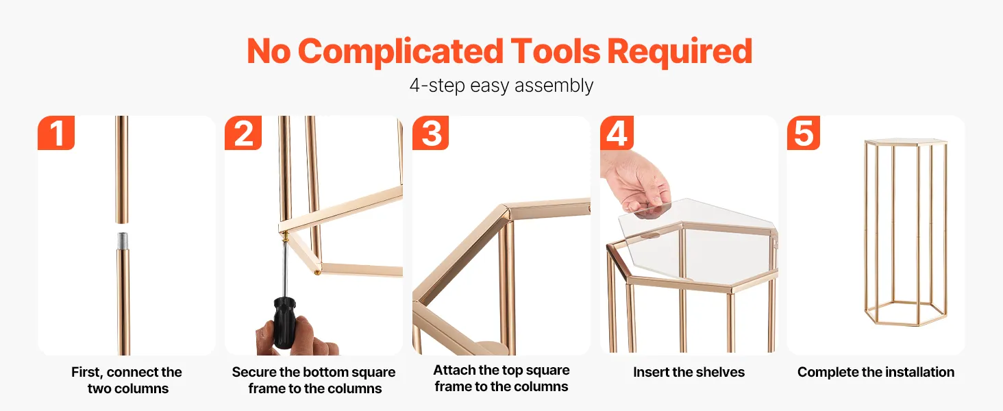 Supporto completamente attrezzato: con tutti i componenti inclusi, questo supporto per fiori alto VEVOR non richiede acquisti aggiuntivi. Il suo design a doppia testa nascosta semplifica il montaggio e migliora la stabilità