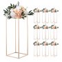Arricchisci i tuoi eventi con questo portafiori da matrimonio composto da 10 pezzi. La struttura a cubo rettangolare supporta fino a 15 kg ed è realizzata in robusto acciaio SPCC con ripiani in acrilico trasparente rifiniti in oro francese. I componenti completi consentono un facile montaggio.