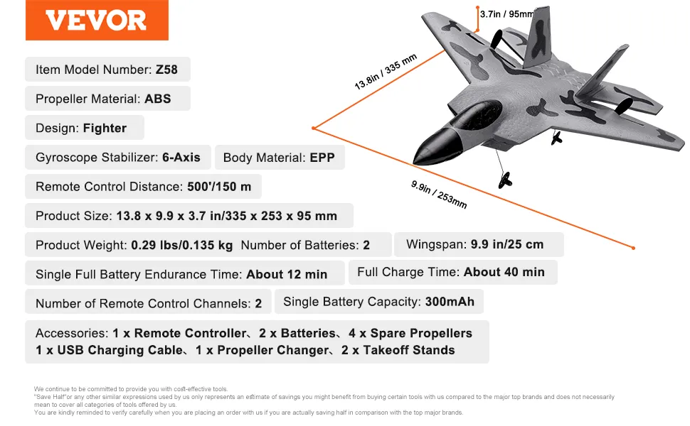 Questo è il miglior giocattolo RC per principianti. Ha uno stabilizzatore giroscopico a 6 assi integrato che assicura voli stabili. Anche se sei alle prime armi con gli aerei RC, lo troverai facile da controllare. La costruzione leggera lo rende anche super maneggevole. Il sistema di controllo remoto VEVOR da 2,4 GHz è intuitivo. Ottieni una connessione fluida e affidabile, rendendo il volo semplice. Bambini e principianti possono volare con sicurezza. Dopo solo poche sessioni di pratica, scoprirai che volare è divertente e coinvolgente. Questo aereo RC è progettato per rendere il processo di apprendimento divertente mantenendo tutti coinvolti.