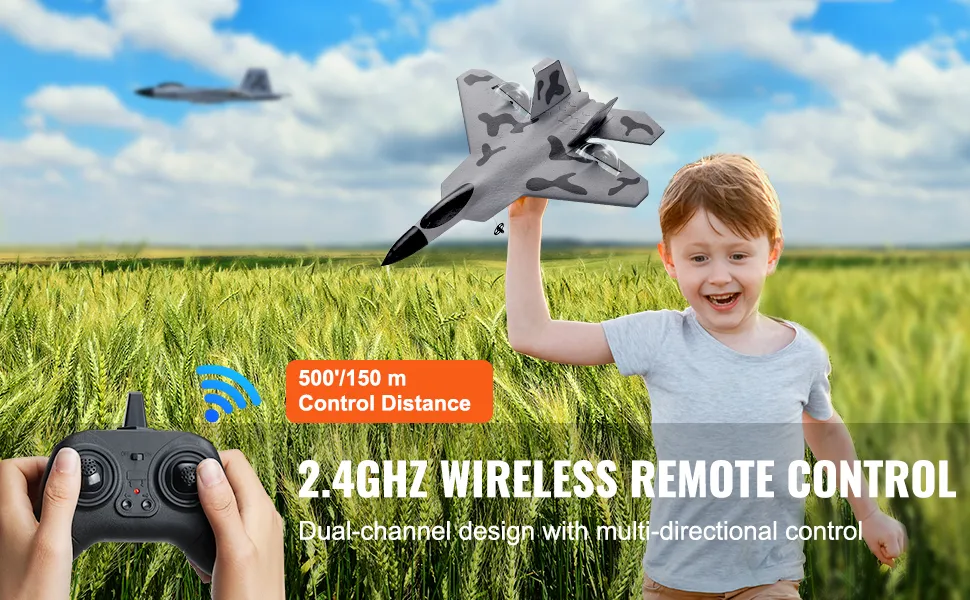 Il sistema di controllo remoto a 2,4 GHz ti offre un'esperienza di volo senza interruzioni. Garantisce una connessione affidabile. Puoi far volare l'aereo fino a 500 piedi di distanza, rendendolo facile da usare per i principianti. Il controllo remoto è facile da usare. Il nostro telecomando è semplice ma comodo. Quindi, è perfetto per i piloti principianti. Più aerei possono facilmente volare insieme senza interferenze. Questa caratteristica è ideale per le competizioni amichevoli perché più aerei possono volare insieme senza interferenze. Il sistema di controllo è reattivo e affidabile, migliorando la tua esperienza di volo complessiva.
