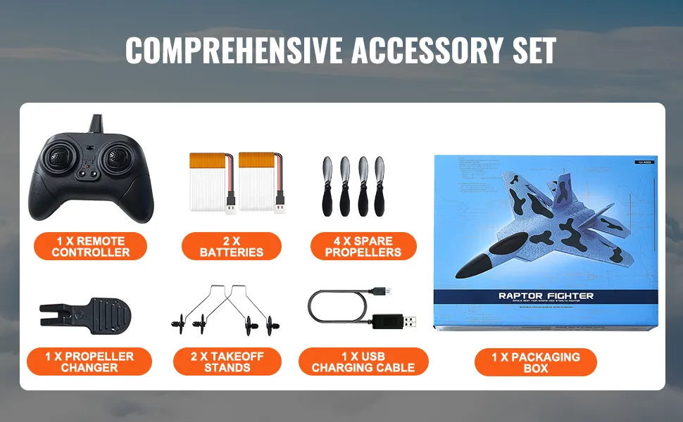 La gioia di volare con l'aereo RC in schiuma EPP VEVOR non ha eguali rispetto a nessun altro strumento, dall'uso semplice a quello efficace. È perfetto sia per bambini che per adulti. Con il suo stabilizzatore giroscopico a 6 assi integrato, assicura voli stabili, anche per i principianti. Questo aereo RC è realizzato in schiuma EPP di alta qualità. Ciò lo rende leggero e resistente. Il sistema di controllo wireless a 2,4 GHz fornisce una connessione fluida e affidabile. Puoi volare con sicurezza nei tuoi dintorni. La portata fino a 500 piedi ti consente di esplorare i cieli con sicurezza grazie al suo design da caccia F-22, assicurando eccitazione nelle tue avventure di volo. Non importa se sei un principiante o un pilota esperto, questo aereo promette ore di divertimento e intrattenimento.