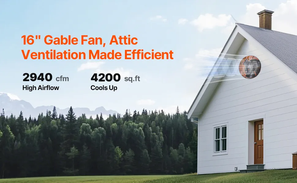 Ventilazione efficiente: il nostro ventilatore a timpano eroga un impressionante flusso d'aria di 2940 CFM (1387,52 L/s), coprendo aree fino a 390 m². È la scelta ideale per soffitte, officine e altri spazi, riducendo efficacemente le temperature e migliorando facilmente la qualità dell'aria.