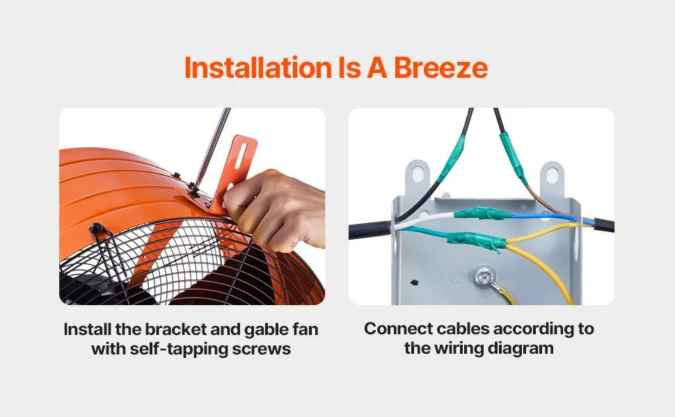 Configuralo in soli 2 passaggi. Fissa la ventola e la staffa di montaggio con viti autofilettanti, quindi collega i cavi seguendo lo schema elettrico. Non servono attrezzi professionali: installa facilmente la nostra ventola di ventilazione per soffitta.