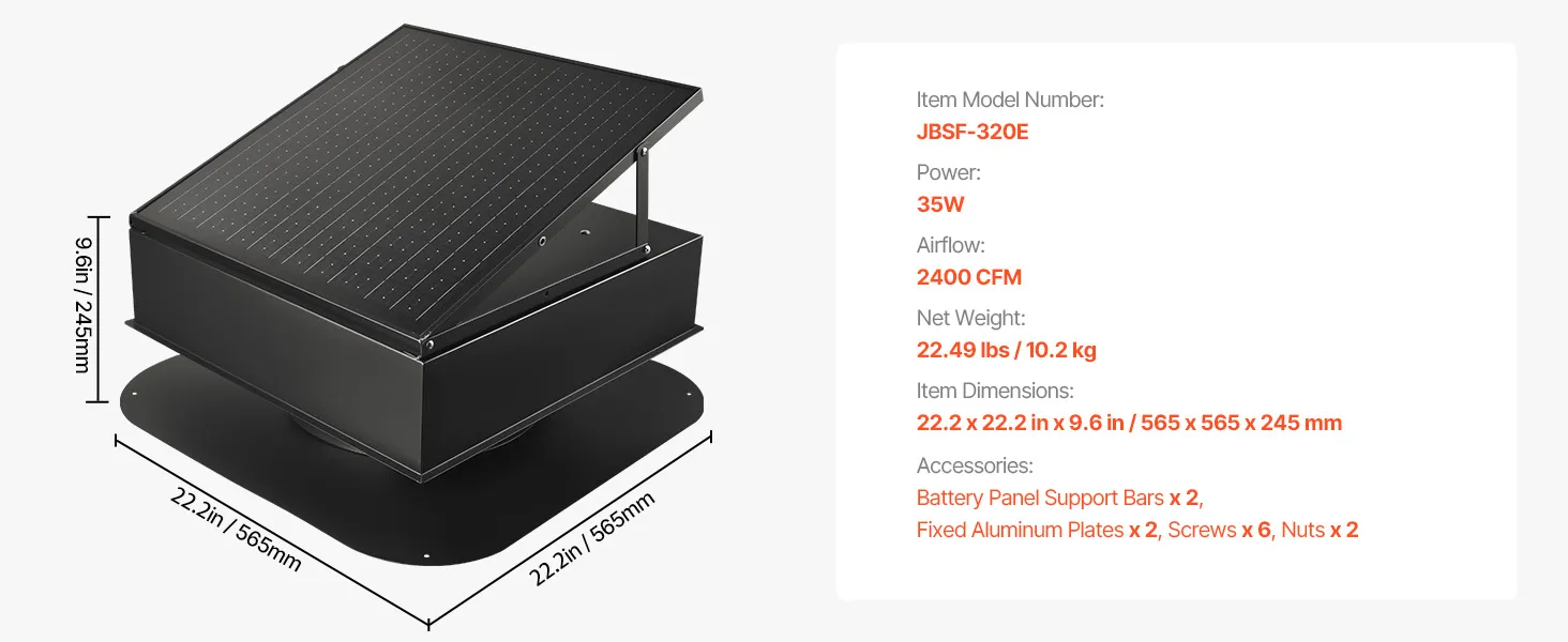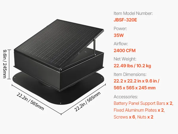 Energia solare MPPT: il controller MPPT da 35 W con una capacità di raffreddamento. Il nostro ventilatore solare per soffitta può ridurre significativamente i costi di raffreddamento ed è adatto per tetti in metallo e muratura