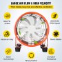 Ventilatore cilindrico per impieghi gravosi VEVOR con condotto flessibile arancione e nero.