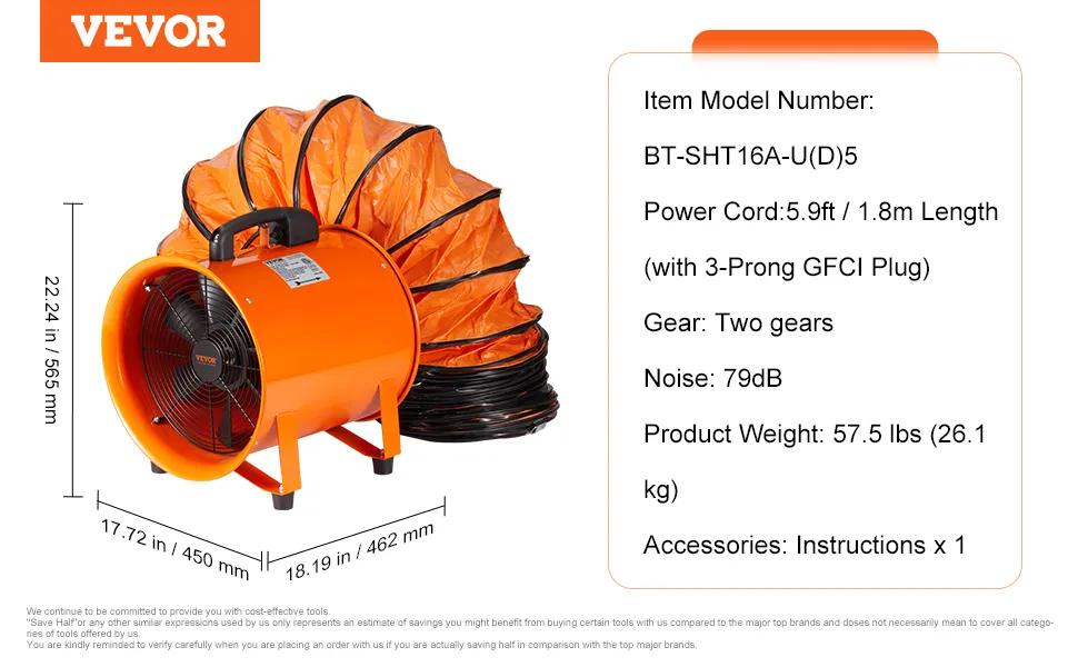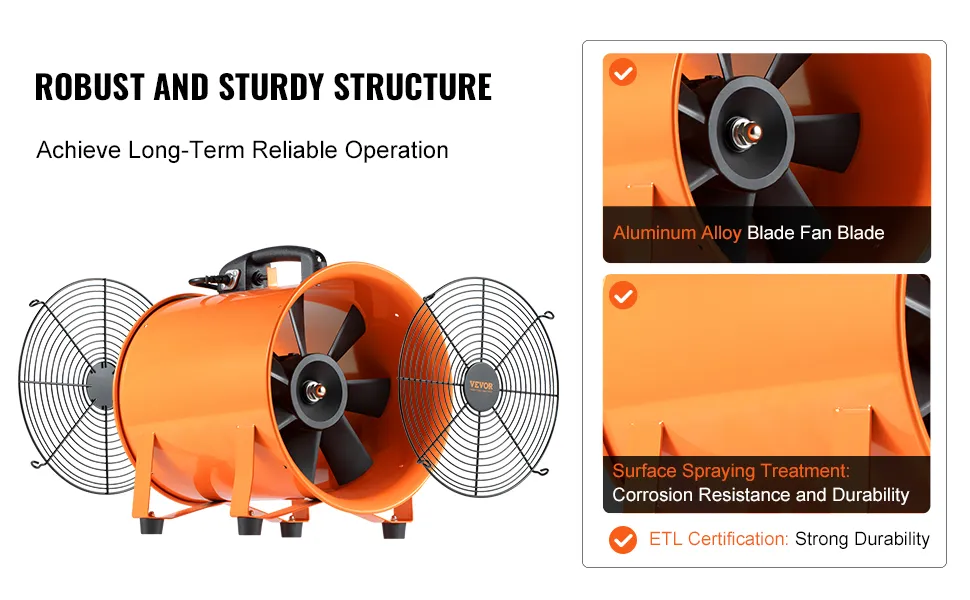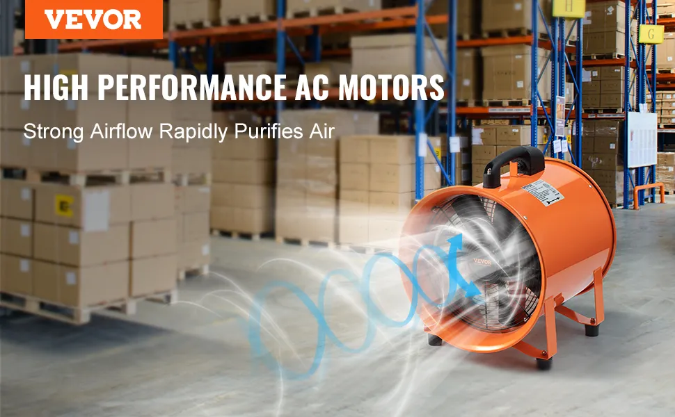 Dotato di un motore CA ad alte prestazioni, espelle fumo, odori e aria calda. Ideale per molteplici settori, come magazzini, cantieri e fabbriche. Testato rigorosamente prima della spedizione, quindi puoi usarlo con sicurezza.