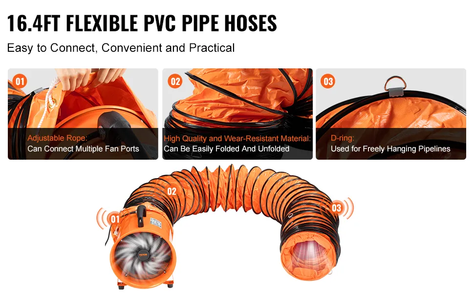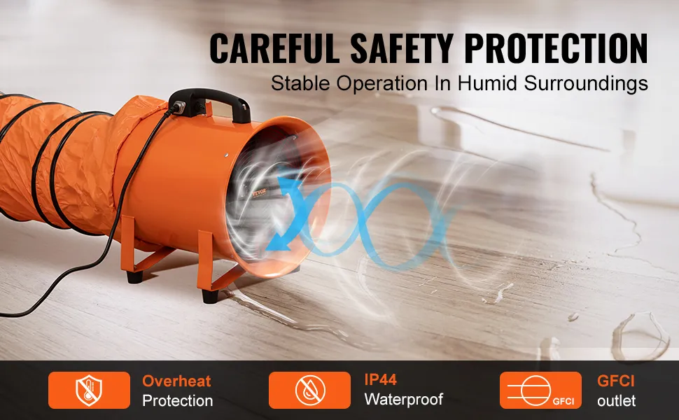 Portatile & Leggero: progettato con una maniglia portatile e piedini in gomma antiscivolo per un facile trasporto e flessibilità di utilizzo in vari luoghi. Questo ventilatore di ventilazione può accelerare lo scarico degli odori nel seminterrato o nelle fogne.