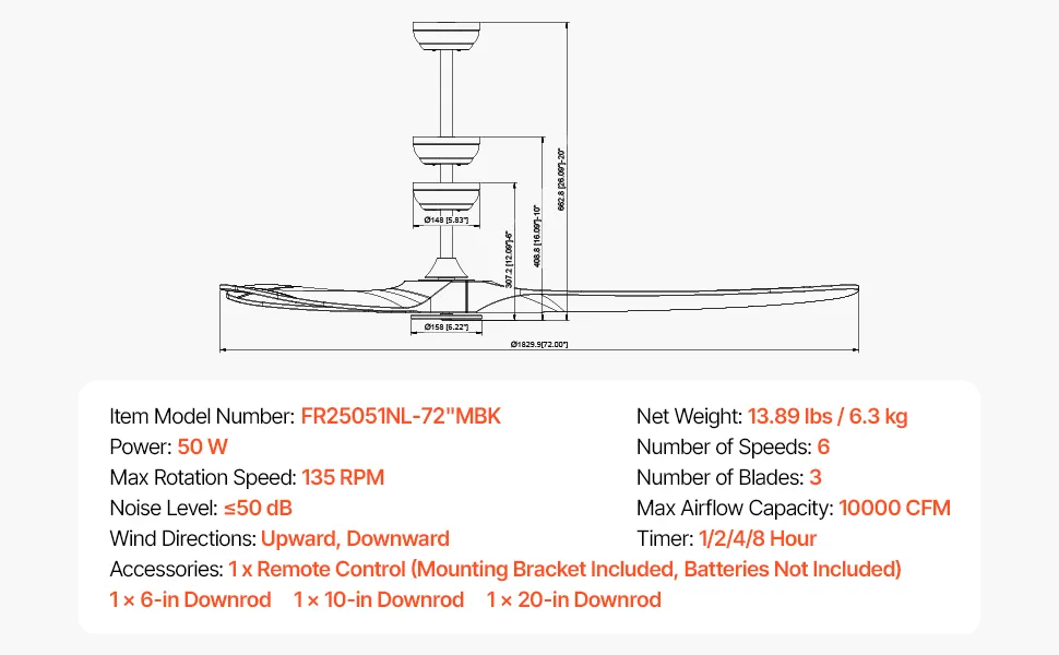 Installazione flessibile: un acquisto include 3 tiranti di diverse dimensioni (6"/15,24 cm, 10"/25,4 cm, 20"/50,8 cm), che si adattano a diverse altezze del soffitto e garantiscono un montaggio a basso profilo in varie stanze