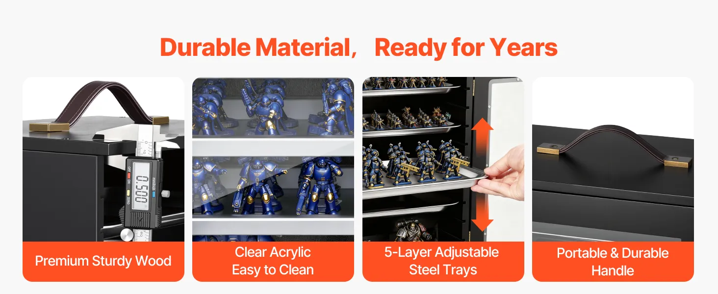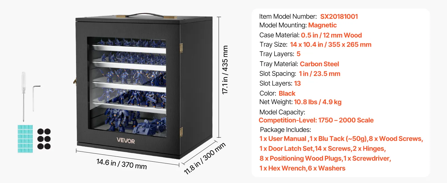 VEVOR Custodia per Miniature da 370 x 300 x 435 mm in Legno con 5 Vassoi Magnetici in Acciaio al Carbonio e 13 Slot, Custodia per il Trasporto di Miniature per Figurine e Modelli da Collezione