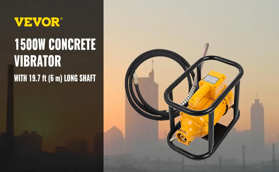 Questo vibratore per calcestruzzo da 1500W è ideale per lavori di costruzione, rattoppatura e altri lavori di riparazione. Con un'impressionante frequenza di vibrazione di oltre 2800 vibrazioni al minuto, rimuove le bolle d'aria e aiuta il calcestruzzo a depositarsi più velocemente. L'albero da 6 m (19,7 piedi) è per un'area di lavoro di ampia portata. Il design leggero e compatto sono ideali per un uso costante.