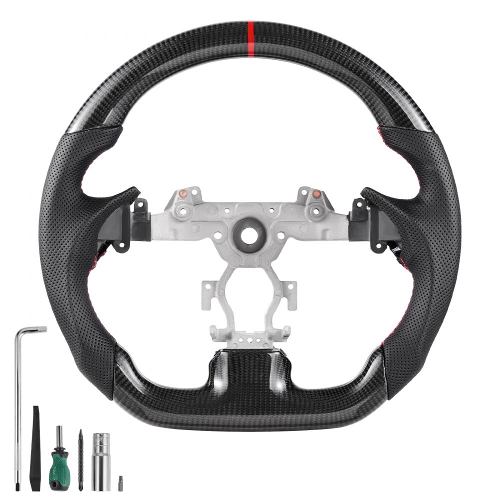 VEVOR Volante per Infiniti G37 2007-2013 Volante in Fibra di Carbonio a Forma di D con Fondo Piatto, Impugnatura in Pelle con Trama Antiscivolo e Cuciture Precise, Accessori di Ricambio per Infiniti