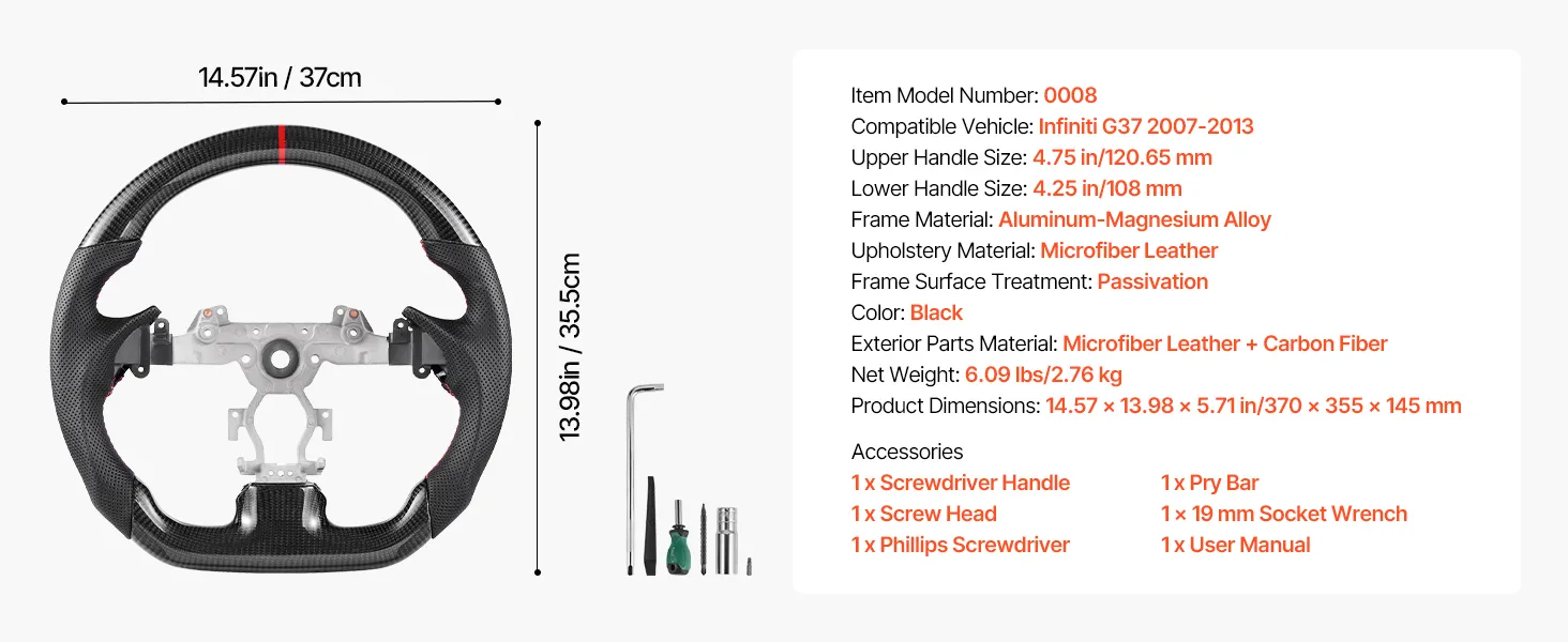 Adatto specificamente al veicolo: compatibile con Infiniti G37 2007-2013, questo volante si installa comodamente e migliora la tua esperienza di guida senza sforzo