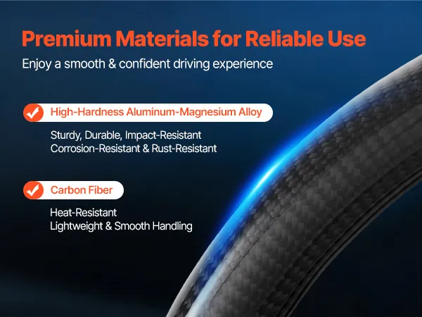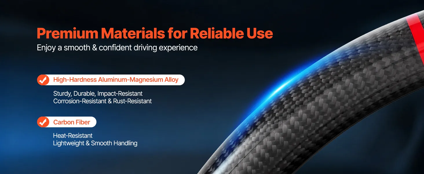 Il nostro volante in fibra di carbonio è realizzato in lega di alluminio e magnesio ad alta durezza, robusta, durevole, resistente agli urti e alla corrosione. Il materiale in fibra di carbonio è resistente al calore e leggero, migliorando le prestazioni di guida.