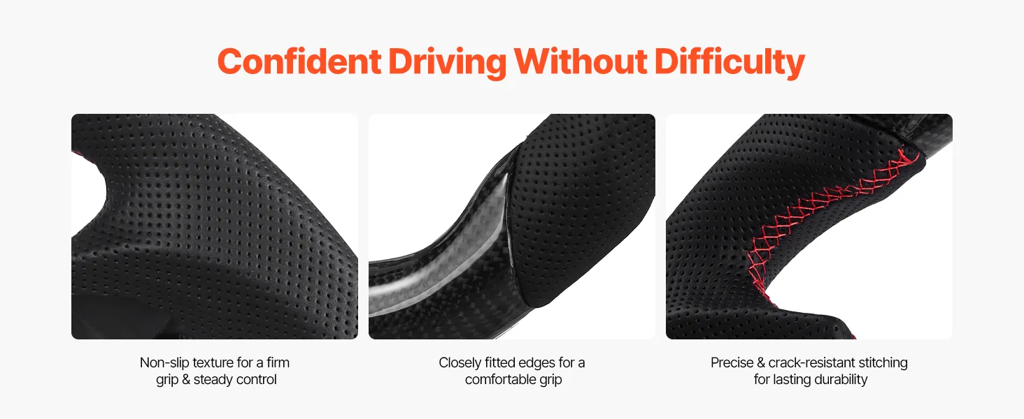 Il nostro volante sostitutivo ti permette di guidare in tutta sicurezza. La texture antiscivolo consente una presa facile e salda, evitando scivolamenti durante la guida; i bordi aderenti garantiscono una presa confortevole; le cuciture precise resistono alle crepe.